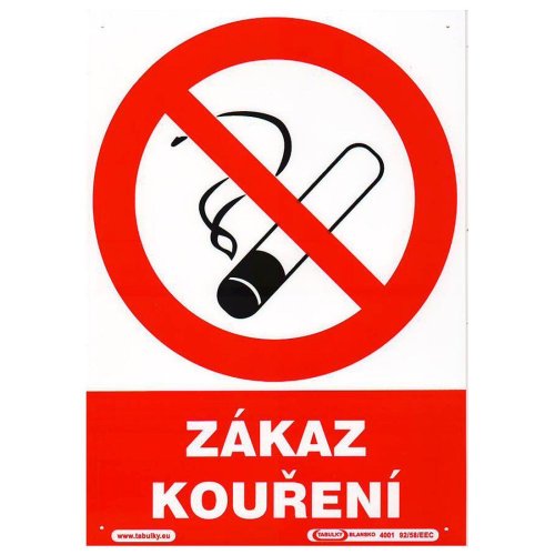 Tabulka - ZÁKAZ KOUŘENÍ 210 x 297 mm, (A 4), PH. rozměry: 210 x 297 mm materiál: plast Bezpečnostní tabulka, jejímž účelem je opatření a snížení rizik.