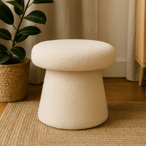 Roztomilý a pohodln taburet ve tvaru houby s plyšovým povrchem zajišťuje komfortní odpočinek pro nohy. Ideální do obývacího pokoje či dětského koutku, kombinuje hravý design s praktičností.