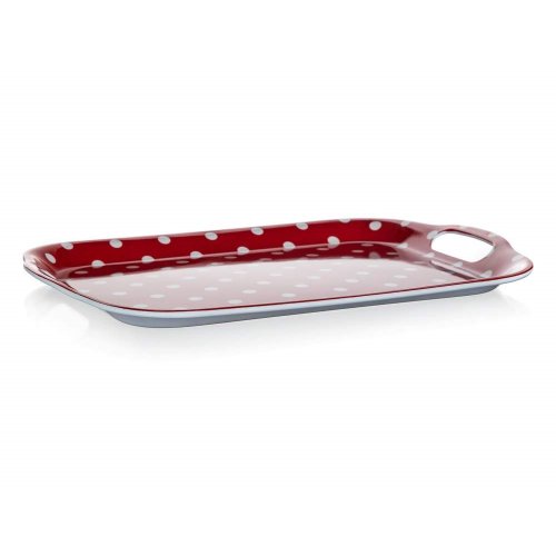 Melaminový tác DOTS v červené barvě je výborným pomocníkem k přenášení více potravin a nápojů najednou. Nádobí se vyrábí z melaminové pryskyřice, která je velmi odolná. Melaminové nádobí je lehké a snadno se s ním manipuluje. Není vhodné do myčky na nádobí.