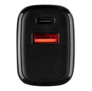 Specifikace: *Vstup: 100–240 V, 50/60 Hz, 0,5 A *Výstup USB-C (PD): 5 V/3 A, 9 V/2,2 A, 12 V/1,67 A *Výstup USB-A (QC 3.0): 5 V/3 A, 9 V/2,2 A, 12 V/1,67 A *Maximální výkon: 20 W *Materiál: Nehořlavý ABS plast *Barva: černá *Ochrana: Přebití, přetížení, přehřátí, zkrat