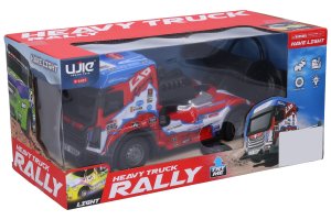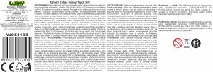 Tahač Heavy Truck svítící RC na dálkové ovládání. Rozměry 23,5x11x11 cm. Frekvence 27MHz. Světelné efekty povrchu tahače. 4xAA baterie do tahače, 2xAA do ovladače nejsou součástí. Try Me tlačítko pro světelné efekty v obalu - 3xAG13 baterie (neměnitelné) součástí. Při vybalování nutno odpojit Try Me kabel z tahače. Rychlost 10 km/h. Dosah až 20 m. Přepínač ON/OFF na spodní straně tahače.