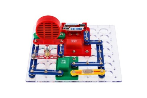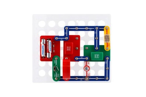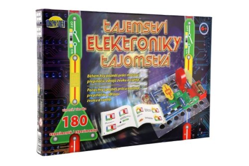 Elektronická stavebnice, ze které lze sestavit dle návodu až 180 projektů. Stavebnici mohou děti nejen stavět. Zkouší si na ni i elektronické projekty jako je práce motoru, přepínačů nebo zdrojů zvuku a světla. V krabici 42x28,5x4 cm. Vhodné od 6 let.