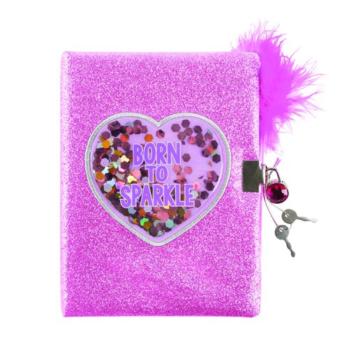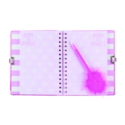 Deník se třpytivými a tvrdými deskami. Obsahuje 160 barevných stránek, pero s pírkem a zámek s klíčky. Vhodné od 6 let.