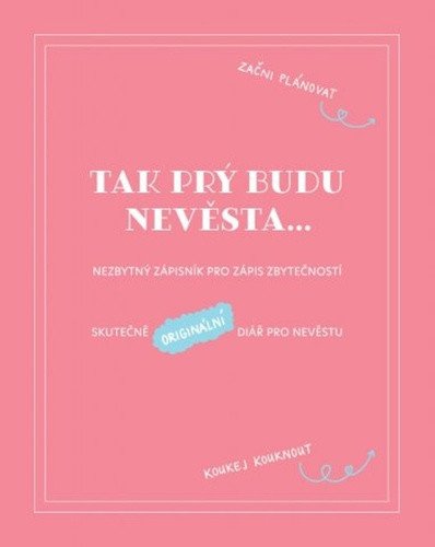 Být nevěstou bude s tímto diářem skutečně IN. Než začnete diář vyplňovat, musíte se přestat smát!Originálně, vtipně pojatý diář pro nevěstu, obsahující kolonky, řádky, rámečky… pro zápis všeho, co je pro praktické plánování svatby potřeba, plný úsměvných, „pravdivých“ rad, doporučení, tipů a „relax“ prvků, které udělají ze svatebních příprav nezapomenutelnou jízdu.Jedinečný originální deník pro nevěstu, který se zaručeně stane její nejlepší kamarádkou při svatebních přípravách.Na diáři pracoval tým lidí, který má svět svateb rád, má na něj přímé vazby a ví, že to hlavní, co nevěsta potřebuje, je šťastný úsměv na tváři, od první chvíle, kdy si řekne: „Tak prý budu nevěsta…“