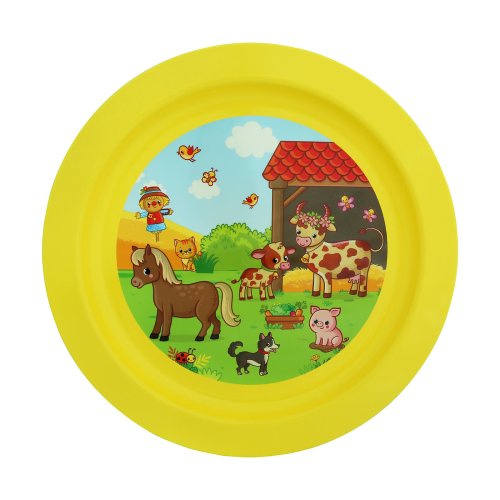 Dětský plastový talířek s potiskem - dekor FARMA - určený pro menší děti.