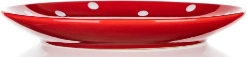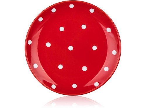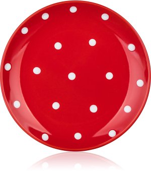 Dezertní talíř DOTS, v červené barvě s bílými puntíky, je vyrobený z kvalitní keramiky. Lze použít do mikrovlnné trouby i do myčky na běžné domácí použití.