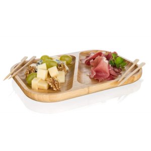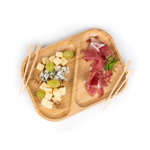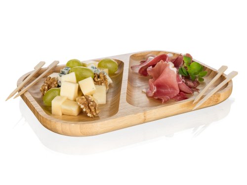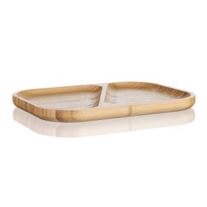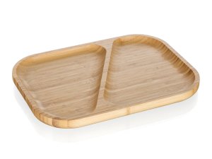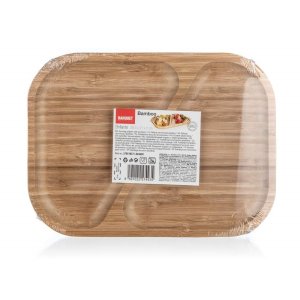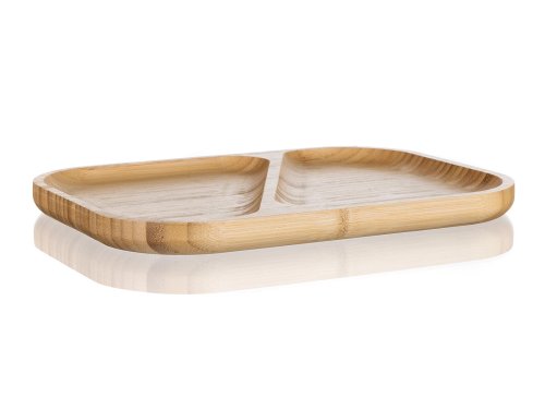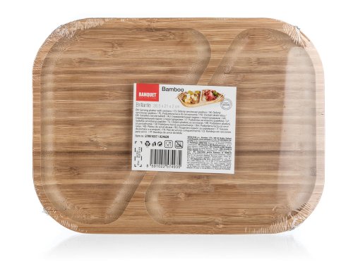 Přírodní talíř 28,5 x 21 x 2 cm z bambusového dřeva určený především na servírování slaných či sladkých pochutin. Díky děleným dřevěným přepážkám je možné servírovat více druhů pochutin na jednom podnosu. Pokud máte rádi pořádek na talíři, bude tento talíř ideální pro vás. Svůj talíř můžete doplnit o další výrobky z naší řady BRILLANTE BAMBOO.