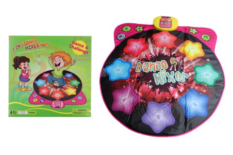 Taneční koberec s funkcemi na 3 AA baterie, které nejsou součástí balení. Ikony - taneční, Bluetooth, hlasitost a 8 tanečních kláves. Balení v krabici, obsahuje návod. Rozměry koberce 88x102 cm. Materiál plast. Věk 3+