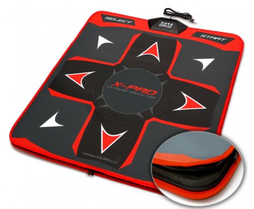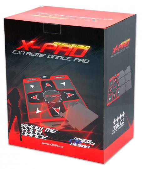 X-PAD, PROFI Version Dance Pad svému uživateli poskytuje pevnou oporu pro odrazy a pocit tance na hardpadu. Samozřejmostí jsou plasticky vyztužené a vyvýšené šipky pro přesnou orientaci na podložce.