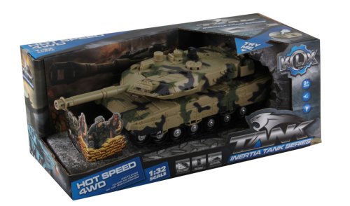 Tank na setrvačník se zvukovými a světelnými efekty. Baterie 3xAG13 jsou součástí balení. Se světlem a zvukem. Na drsném povrchu může stoupat ve 45° úhlu, otáčí se o 360°, hlaveň tanku se hýbe nahoru a dolů.