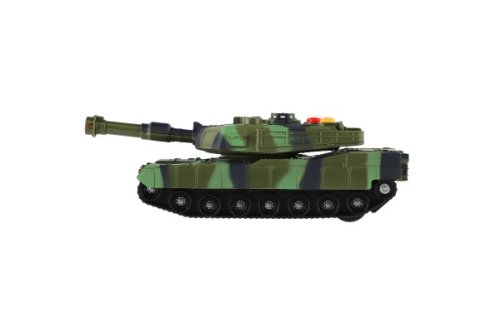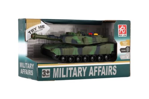 Tank na setrvačník se bude líbit klukům, kterým se to doma vojáčky jenom hemží. Každá pořádná armáda musí mít i tanky, se kterými už žádnou bitvu neprohraje a celá válka bude vyhraná. Hračka vydává zvukové i světelné efekty.Spínače pro zvukové efekty jsou na střeše. Rozměr tanku: 17 cm Rozměr krabice: 20 x 11 x 9 cm Na baterie: 3x AG13, jsou součástí výrobku Vhodné pro děti od 3 let