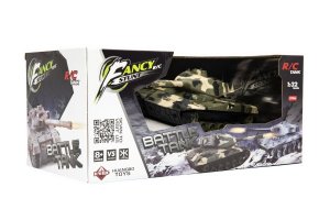 Tank vhodný pro tankovou bitvu. Tank vydává zvuky, střílí, otočná věž se otáčí o 360 stupňů, svítí. Kdo ztratí všechny "životy", prohrál. Hlaveň vydává zvuky. Tento tank pracuje na frekvenci 27 MHz. Vyrobeno z kvalitního a odolného plastu. Měřítko 1:32. Baterie 1x 4.8V AA (tank), 1x 9V (dálkové ovládání) jsou součástí balení. Vrhni se do válečné bitvy! Ovládej tank a hledej svého nepřítele! Vzdálenost dálkového ovladače do 15 metrů. Vzdálenost mezi tanky pro tankovou bitvu do 4 metrů. První doba nabíjení baterie je 8 hodin. Každé další nabíjení bude 3-4 hodiny do plného nabití baterie. Jeden plně nabitý dobíjecí pack vydrží 10-15 minut hry. Při nákupu druhého tanku, např. pro tankovou bitvu, musí být druhý tank na jiné frekvenci. Tzn. pokud máte tank na frekvenci 40 MHz, druhý tank musí být na frekvenci 27 MHz. Rozměry balení 37 x 17 x 19 cm. Vhodné pro děti od 8 let.