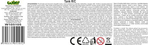 RC Tank má otočnou věž a zvládne manévry v náročném terénu. Světelné a zvukové efekty. V sadě s tankem 105106 lze hrát tankovou bitvu, kde každý z tanků má 4 životy.