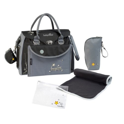 Přebalovací taška vybavená termoobalem, omyvatelnou kapsičkou na dudlík, přebalovací podložkou (57x45cm), fleecovou dekou a uzavíratelným sáčkem na špinavé plenky).