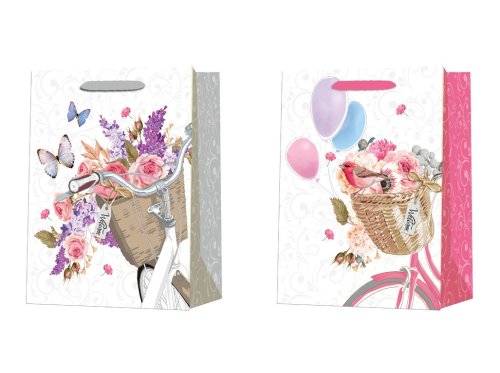 Malá dárková taška o rozměru 100×150 mm s dekorativním motivem koše s květinami. Barevné provedení je dodáváno v mixu, jednotlivé tašky se mohou lišit motivem nebo odstínem.