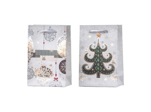 Malá dárková taška o rozměru 100×150 mm s veselými vánočními motivy stromků a ozdob v barevném mixu. Taška je vyrobena z kvalitního papíru a vybavena praktickými uchy pro snadné přenášení.