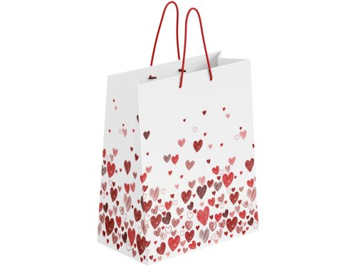 Taška dárková 100x50x150 mm srdce, bílá, červená