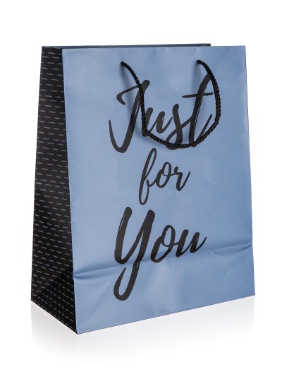 Taška dárková s dekorem JUST FOR YOU BLUE vel. M, je vyrobena z papíru a vybavena textilním uchem. Rozměry tašky: 18 x 22 x 10 cm. V nabídce máme na výběr další 4 velikosti a 5 dekorů.