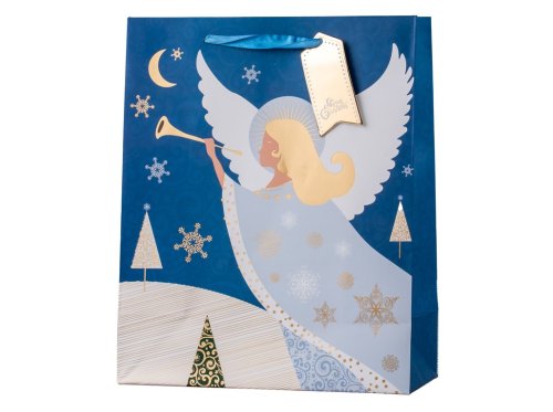 Taška dárková 260x320 mm anděl, bílá, modrá