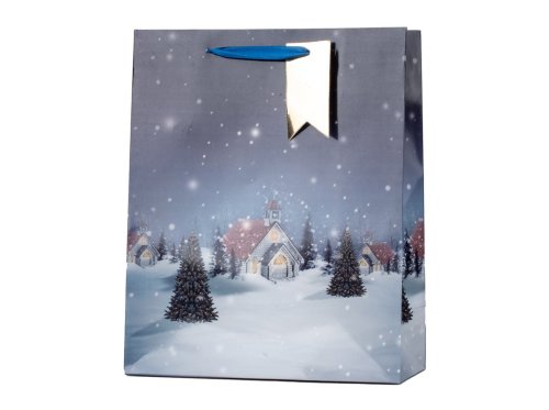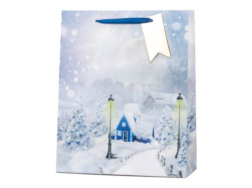 Velká dárková taška o rozměru 260×320 mm s nádhernými motivy zimní krajiny v různém barevném provedení. Taška je vyrobena z kvalitního pevného papíru a doplněna odolnými uchy, díky kterým je vhodná i na těžší či větší dárky, jako jsou knihy, textilie, dekorace nebo dárkové sady.