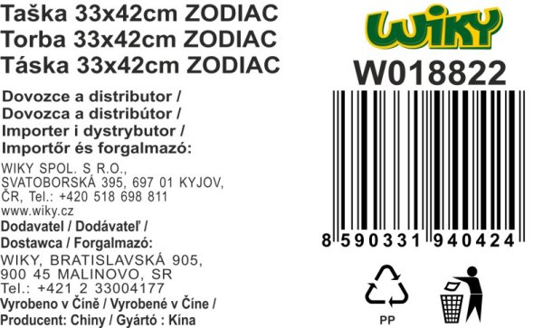 aška látková ZODIAC o velikosti 33x42 cm. 12 znamení zvěrokruhu, 12 druhů.