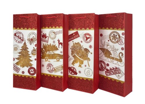 TAŠKA NA VÍNO VÁNOČNÍ 36x12.5x8.5CM, 4XASSORT