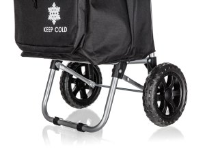 Nákupní taška na kolečkách je pomocníkem při těžších nákupech zejména pro starší občany a ženy. Textilní taška je snadno odnímatelná z kovové konstrukce a snadná na údržbu. Taška na kolečkách má ergonomickou rukojeť a konstrukce tašky je zpevněná kovovou odkládací plochou, která stabilizuje celý výrobek. Plastová kolečka umožňují jednoduchý pohyb po jakémkoli povrchu. Součástí tašky je tepelně izolovaná kapsa pro delší uchování mražených nebo nebo teplých potravit.