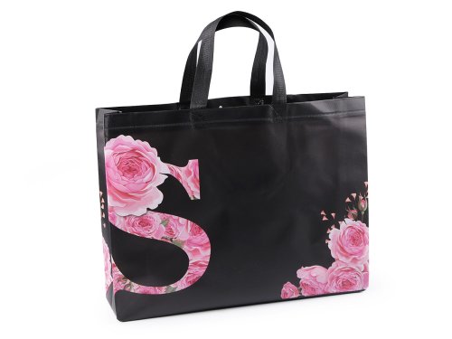 Do velké tašky z [laminované] netkané textilie s potiskem růží naskládáte plno věcí. Má dvě ucha, skvěle se složí třeba do kabelky. Díky opakovanému používání je šetrná k životnímu prostředí, stále častěji nahrazuje igelitové tašky. Hodí se k reklamním účelům. Není určená na těžké nákupy.