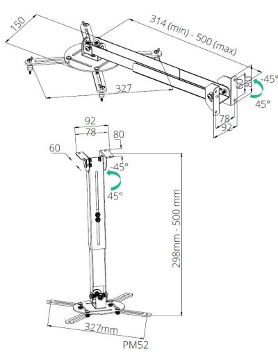 *Použití: projektor *Typ držáku: na strop/na zeď *Maximální hmotnost: 10 kg *Materiál: kov *Barva: stříbrná