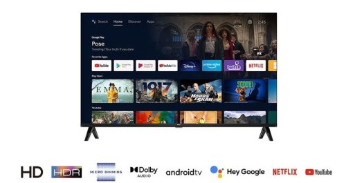 Televize SMART ANDROID LED, 81cm, Full HD, 50Hz, Direct LED, HDR10, DVB-T2/S2/C, H.265/HEVC, 2× HDMI, 1× USB, CI+, LAN, WiFi, Bluetooth, DLNA, Chromecast, hlasové ovládání, Google Assistent, párování s mobilním zařízením, VESA 100×100, Dolby Audio, en. třída F