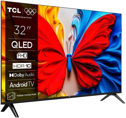 Televize – ANDROID, QLED, 81cm, Full HD, 50/60 Hz, HDR10, antireflexní obraz, DVB-T2/S2/C, 2× HDMI, 1× USB, CI+, LAN, WiFi, Bluetooth, DLNA, Chromecast, HbbTV 2.0.3, herní režim, hlasové ovládaní, Google Assistant, párování s mobilním zařízením, Oneplay, VESA 100×100, repro 16 W, Dolby Digital Plus, Prostorový zvuk, Dolby Audio, energetická třída F