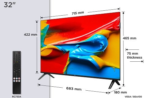 Televize – ANDROID, QLED, 81cm, HD Ready, 50/60 Hz, HDR10, antireflexní obraz, DVB-T2/S2/C, 2× HDMI, 1× USB, CI+, LAN, WiFi, Bluetooth, DLNA, Chromecast, HbbTV 2.0.3, herní režim, hlasové ovládaní, Google Assistant, párování s mobilním zařízením, Oneplay, VESA 100×100, repro 16 W, Dolby Digital Plus, Prostorový zvuk, Dolby Audio, energetická třída F