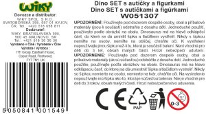 Součástí balení jsou dva dinosauři ve formě malých figurek a dvě autíčka – jedno modré a jedno žluto-oranžové s agresivním designem, což podporuje dětskou představivost a kreativní hraní. Dinosauří kostra slouží nejen jako skladovací prostor, ale také jako herní aréna. Uvnitř je integrovaná vnitřní rampa, po níž lze spouštět autíčka, která vyjíždějí z nohou dinosaura, což přináší dynamiku do hry. Na hlavě kostry je umístěno tlačítko, které umožňuje vystřelit tři rakety, jež jsou součástí setu, a tím zvyšuje interaktivitu a napětí během hry.