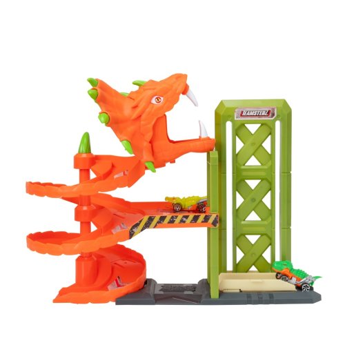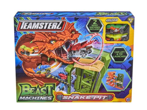 Teamsterz hadí dráha s pirátskou garáží a 2 autíčky. Zažij napínavou jízdu s hadí dráhou Teamsterz, kde minulost a současnost potkávají pirátskou garáž! Přenes svá autíčka nahoru výtahem a připrav se na pořádnou jízdu – nahoď je do hadí čelisti a sleduj, jak čelist praská, když autíčko projíždí. Tato zábavná a napínavá dráha je ideální pro děti od 3 let!