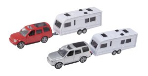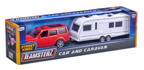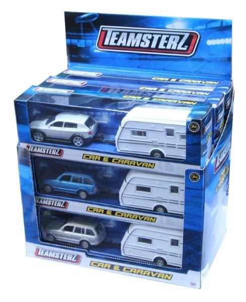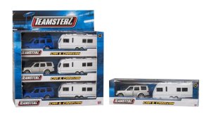 Teamsterz jeep s karavanem. Jeep má otevírací dveře. Na výběr v modré a stříbrné barvě.