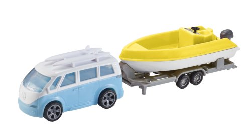 Kovový karavan s přívěsem a člunem. K dostání ve 4 různých provedeních. Vhodné pro děti od 3 let.