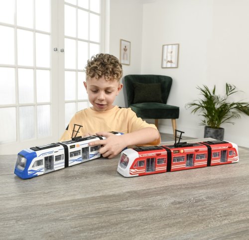 Vydejte se na cestu za dobrodružstvím s tramvají Teamsterz! Tato detailně zpracovaná tramvaj nabízí realistické zvuky motoru, otevírání dveří a další efekty, které dodají hře autentičnost. Díky dvěma ohebným kloubům se může snadno ohýbat jako skutečná tramvaj. K dispozici ve dvou barevných provedeních – červené nebo modré. Součástí balení jsou 3× AAA baterie. Vhodné pro děti od 3 let.