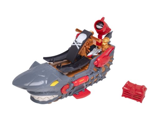 Sjeďte s autíčkem po rampě a zatlačte loď vpřed, abyste vypustili autíčko z čelistí. Loď je vybavena dělem, které můžete nabít dělovou koulí nebo hlavní a následně zatáhnout za páčku, abyste vystřelili – skvělá zábava pro všechny malé piráty!
