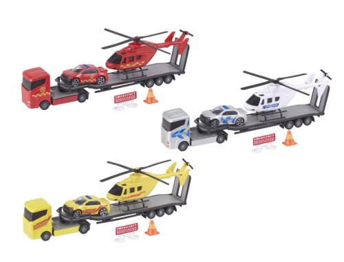 Tahač, který přepravuje auto a helikoptéru. K dostání ve 3 různých provedeních. Vhodné pro děti od 3 let.