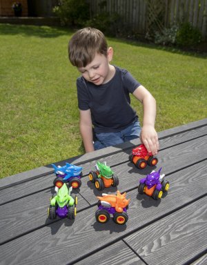 • Závoďte, havarujte a bojujte s dalšími Beast vozidly. • Zatlač a jeď. • K dispozici 6 různých designů. • Pomáhá k rozvoji kognitivních a jemných motorických dovedností vašeho dítěte. • Vhodné pro děti od 3 let.