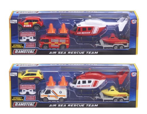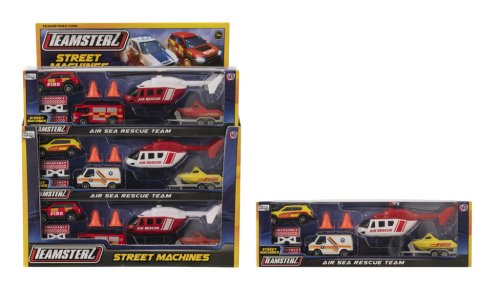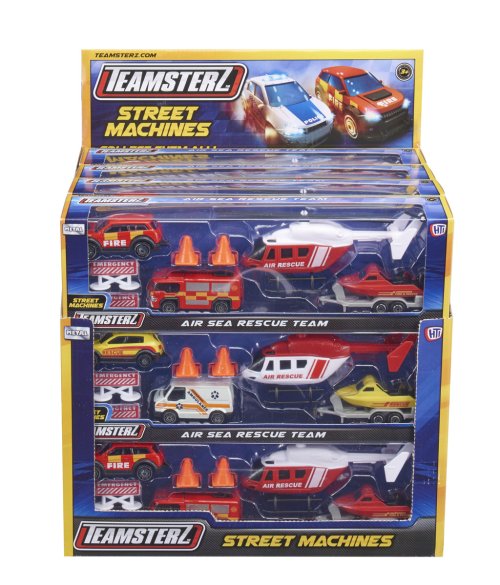 Připravte se na své vlastní záchranné mise na moři. Hrací sada obsahuje vysoce detailní litou helikoptéru s ručně otáčejícími se listy vrtule, zásahové vozidlo, vozidlo 4×4 s tažnou tyčí, plastový člun a odnímatelný přívěs s řadou nouzového silničního příslušenství. Dostupné v sortimentu 2; hasiči a záchranáři a letečtí záchranáři. Perfektní dárek pro každého malého nadšeného řidiče, který nabízí hodiny nápadité zábavy! Napomáhá rozvoji sociálních dovedností, představivosti a jemné motoriky vašich nejmenších, protože mají ideální velikost pro hraní. Tlakově litá vozidla Teamsterz Street Machines mají měřítko přibližně 3 palce a vyznačují se vysoce kvalitním tlakově litým skeletem karoserie a nezávislými volně pohyblivými koly. Vhodné pro věk 3+