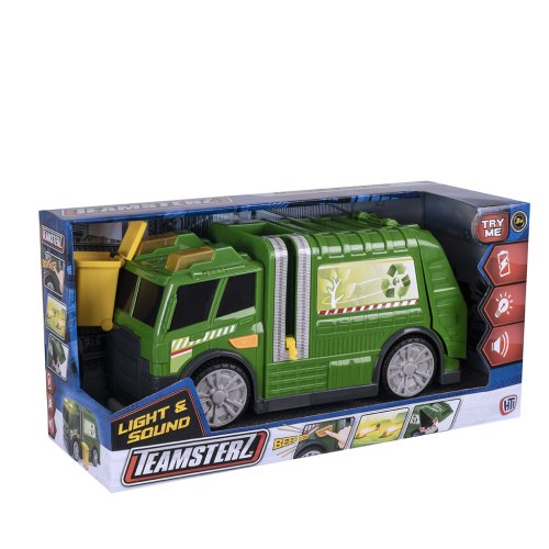 Připojte se k zábavné a akční práci na ulici s Teamsterz popelářským vozem, který je vybaven světelnými a zvukovými efekty pro ještě realističtější hru! Tento skvělý popelářský vůz má odnímatelnou popelnici, což z něj činí ideální hračku pro všechny malé pomocníky, kteří si rádi hrají na městské služby.