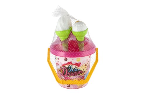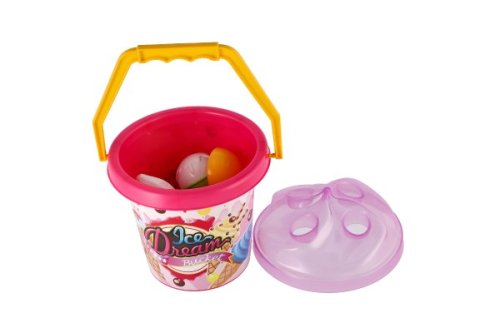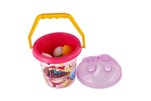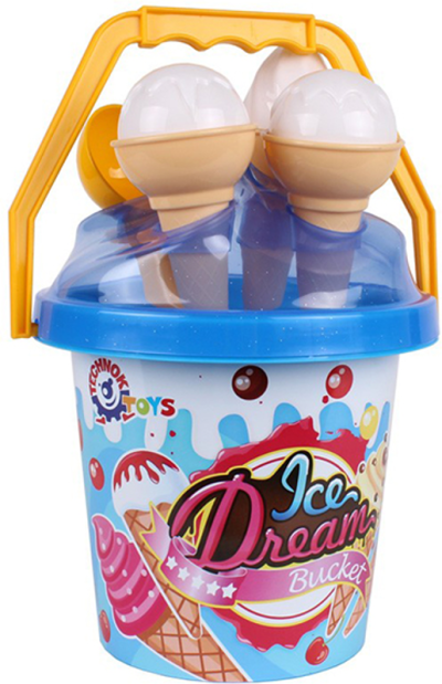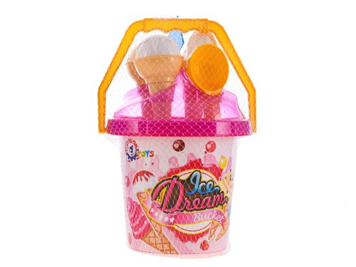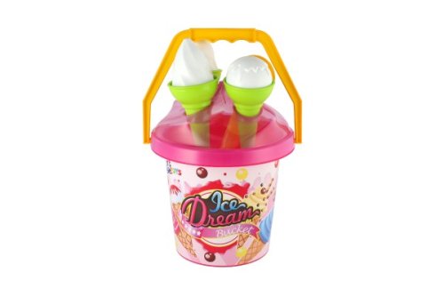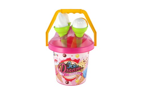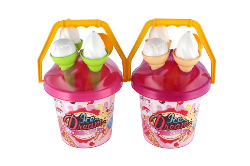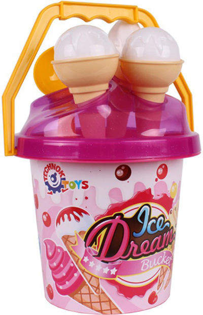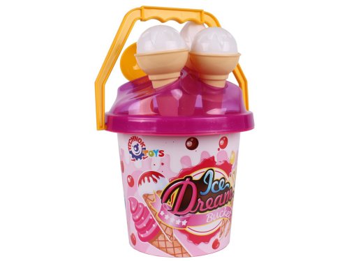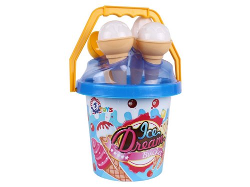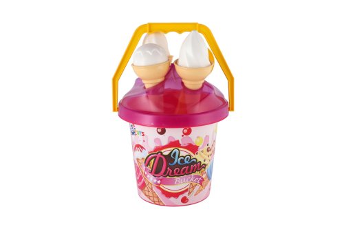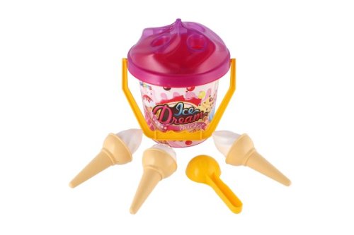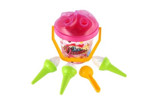 1 kyblík (výška cca 20 cm), 1 lopatka, 2 formičky ve tvaru zmrzliny.