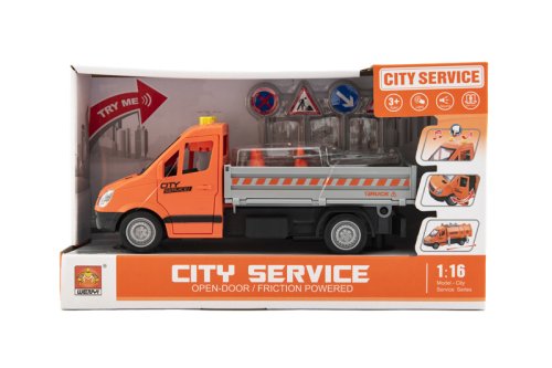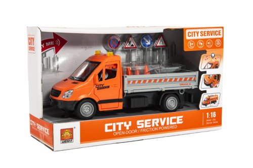 Silničářské auto plné dopravních značek a pomůcek potřebných pro práci každého silničáře. Údržba silnic, chodníků a parků je důležitá v každé obci a městě. Auto je v měřítku 1:16, je na setrvačník, se světlem a se zvukem. Baterie 3x AG13 jsou součástí balení. Rozměry balení 32 x 19 x 12 cm. Vhodné pro děti od 3 let.