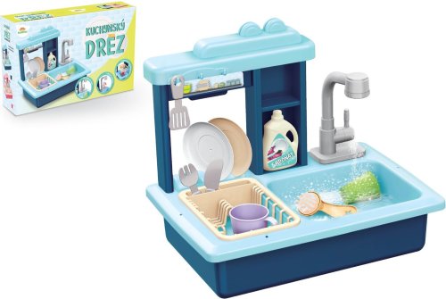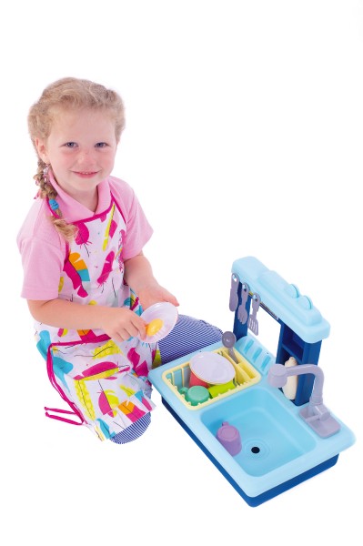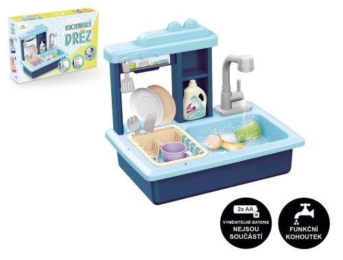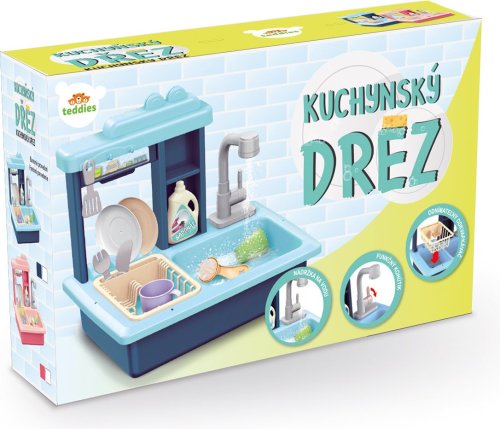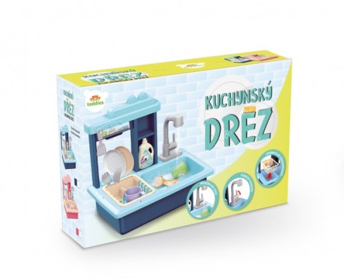 Naplňte dřez vodou a sledujte, jak se z mytí nádobí stane zábava. Dřez s funkčním kohoutkem, nádržkou na vodu, odnímatelným odkapávačem a doplňky, které musí být v každé kuchyňce. Vyrobeno z kvalitního plastu. Baterie 2x AA nejsou součástí balení. Rozměry balení 46 x 28 x 12 cm. Vhodné pro děti od 3 let.