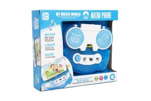 Užijte si domácí karaoke party! Modrý mikrofon karaoke hraje melodie, do kterých děti zpívají nebo lze připojit mobilní telefon, ze kterého můžete pouštět vlastní hudbu. Mikrofon také svítí. Baterie 3x AA nejsou součástí balení. Rozměry balení 24 x 20 x 6 cm Vhodné pro děti od 3 let