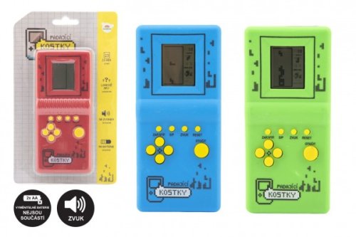 Klasická elektronická hra se skládáním kostiček. Cílem hry je skládat různé tvary do sebe a nenechat žádné místo v řadě prázdné. Po zaplnění celé řady se posune vše o řadu dolů. Skládat můžete až do zaplnění celého displeje. Hra má několik úrovní a rychlostí. Baterie 2x AA nejsou součástí balení.Rozměry balení 13 x 21 x 3 cm.Vhodné pro děti od 3 let.
