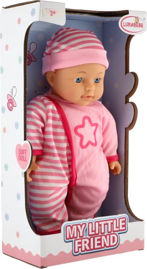 Roztomilá panenka s měkým tělíčkem v krásném růžovém oblečku s čepičkou. Toto miminko udělá jistě radost každé holčičce a stane se tak její nepostradatelnou součástí.