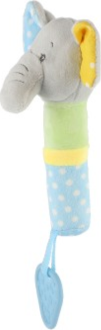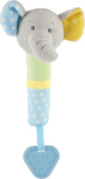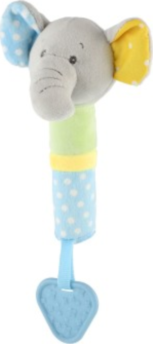 Plyšová pískací hračka s kousátkem, snadno se drží (průměr 3 cm) , texturovaný povrch tkaniny, měkký povrch stimuluje rozvoj smyslového vnímání.