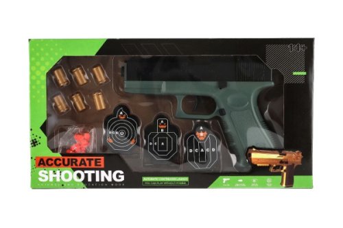 Nabij, zamiř a vystřel na terč! Podaří se ti trefit přímo střed? Můžeš si dát třeba turnaj o nejlepšího střelce se sourozencem! V balení najdeš 6 nábojů a tři terče! Zábava může začít! Rozměry balení 34 x 18 x 4,5 cm.